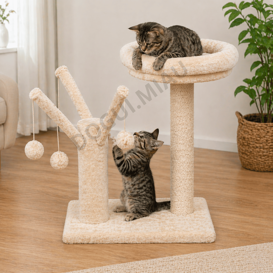 El rascador para gatos de 2 niveles con juguetes es la opción ideal para mantener a tu mascota activa, feliz y lejos de tus muebles. Diseñado con postes de sisal resistentes, base estable y una cama superior acolchada, este rascador combina descanso, juego y cuidado de uñas en un solo lugar. Incluye pelotas colgantes interactivas que estimulan el instinto de caza, ayudando a reducir el estrés y el aburrimiento, especialmente en gatos de interior. Su estructura es perfecta para gatos pequeños, medianos y grandes, convirtiéndolo en un rascador para gatos resistente, duradero y funcional. Ideal si buscas un árbol para gatos moderno con juguetes que además complemente tu hogar.